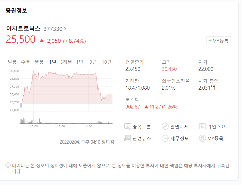 이지트로닉스는 저는 10주만 청약하여 1주를 받았고