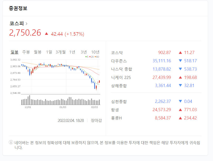 코스피는 오늘 오랫만에 1.57% 상승하여 2750에 안착하였는데요.
