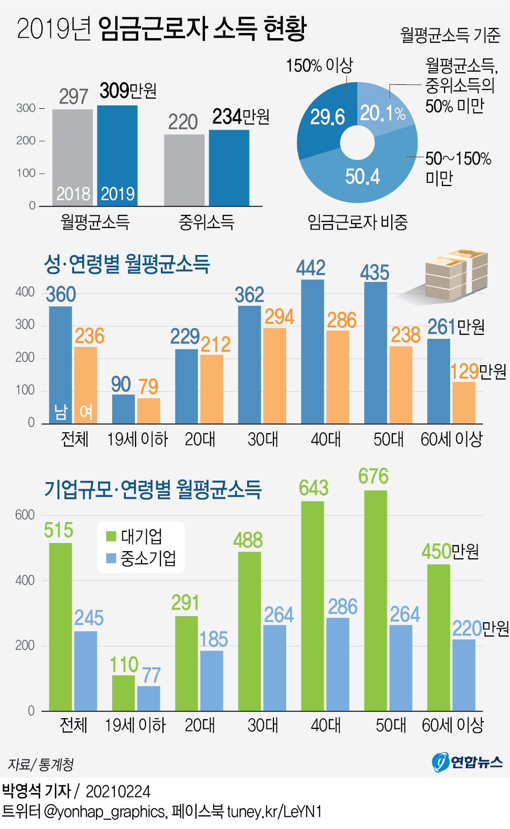 한국 임금노동자 평균이 작년말기준.