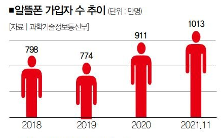 그리고 국내에 도입된 이후로 국내 알뜰폰 가입자는 작년 천만명을 돌파하였는데요.