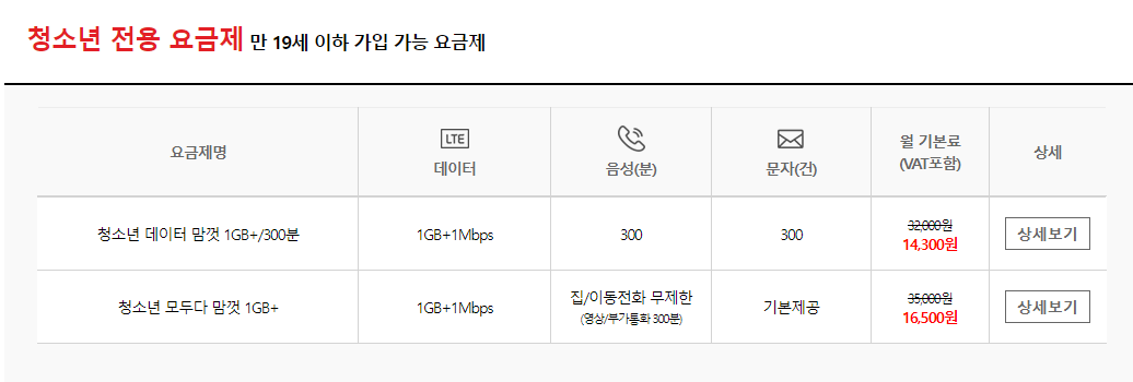 알뜰폰의 청소년 요금제는 조금 아쉽긴 한데요.
