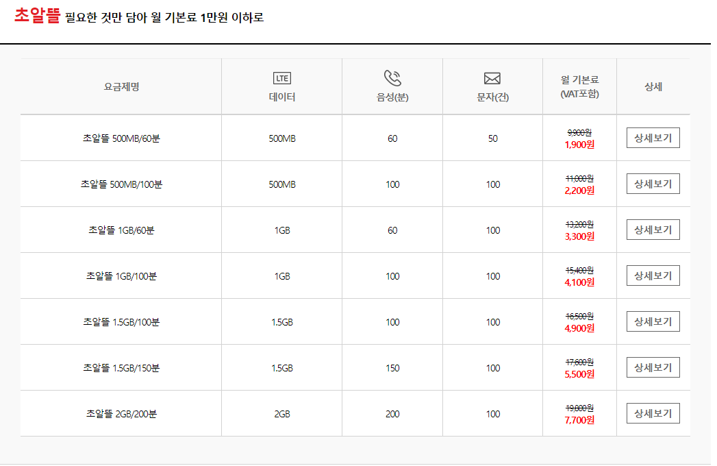알뜰폰이라는 이름에 맞춰 세컨 요금제를 찾는다면 최저가 요금제를 찾는 경우가 많은데요.