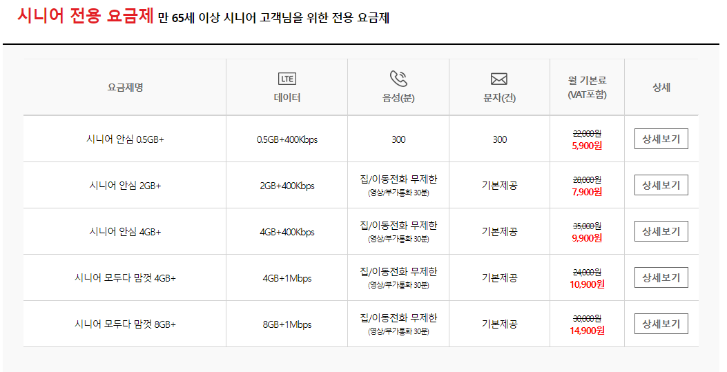 어르신들 가입하기에 가장 좋은 요금제 입니다.