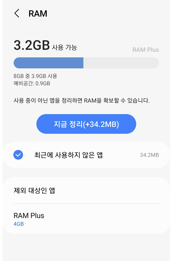 그 대신 ONE UI 4부터 램 플러스 기능을 추가하였습니다.