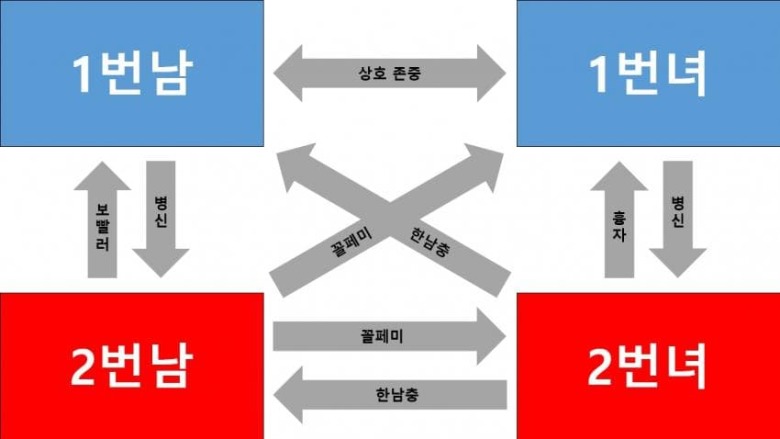 현재 네티즌들은 1번남 2번남, 그리고 1번녀 2번녀 이렇게 구분하고 있는 추세입니다.