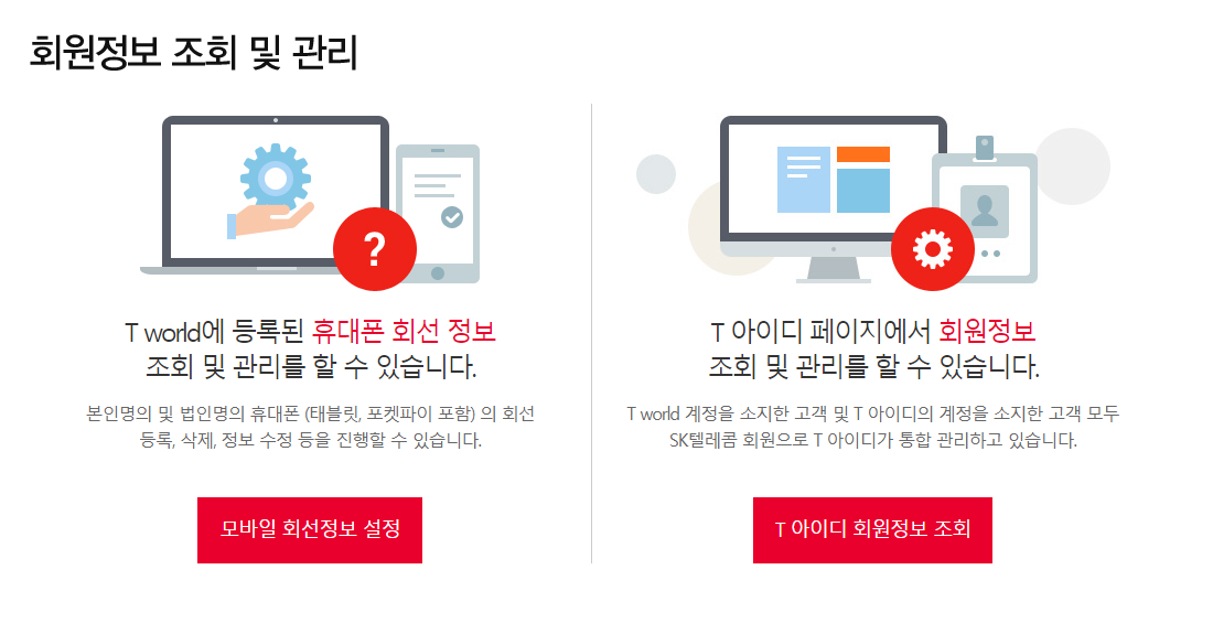 Tworld의 경우 회원정보 조회 및 관리 - T 아이디 회원정보 조회 메뉴에서