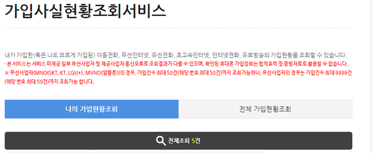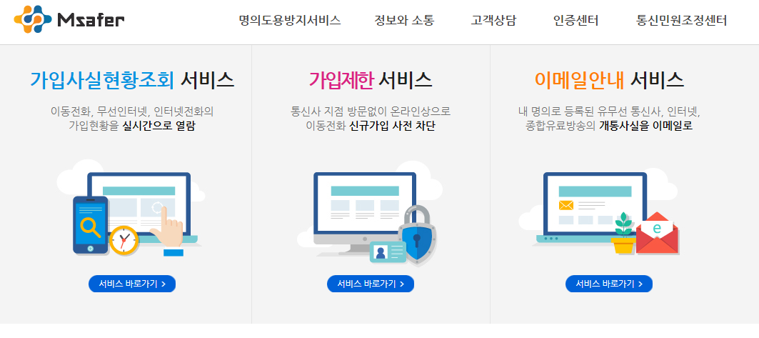 심 스와핑이 의심이 될 경우 msafer 서비스를 통해서 명의도용 여부를 확인할 수 있습니다.
