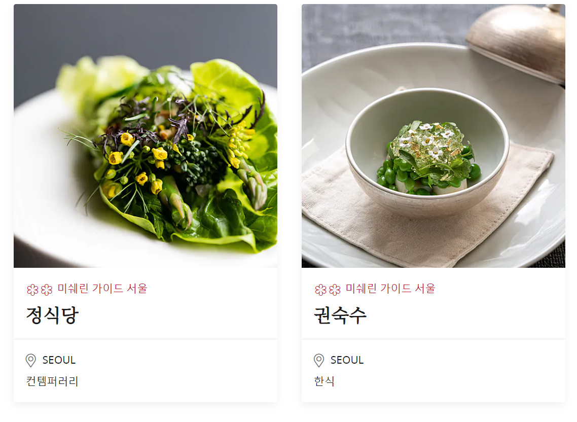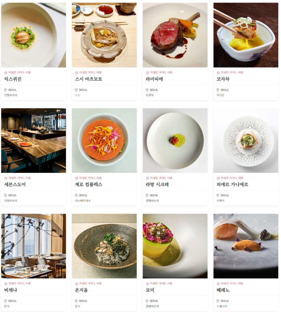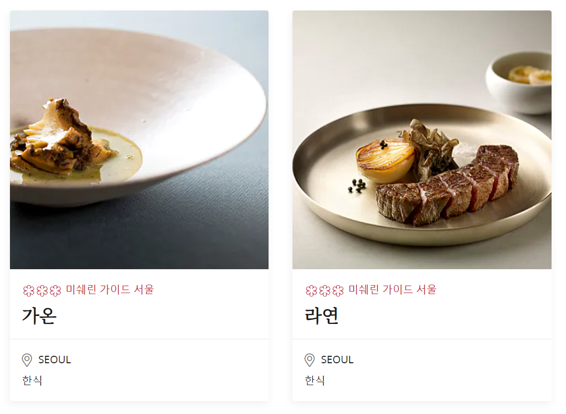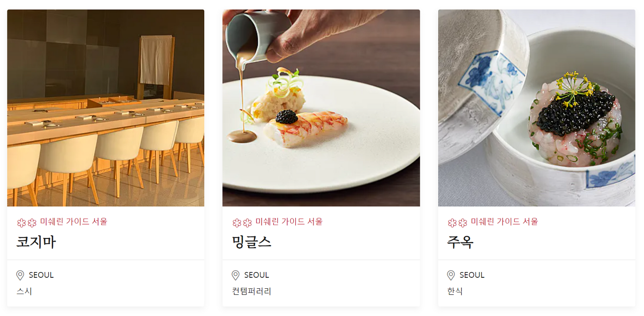 전체 한국 미쉐린 가이드는 아래와 같습니다.