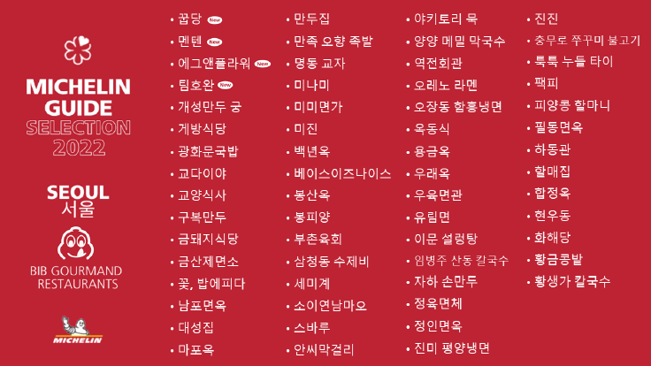 서울 2021, 2022 빕 구르망에 포함되었다고 합니다.