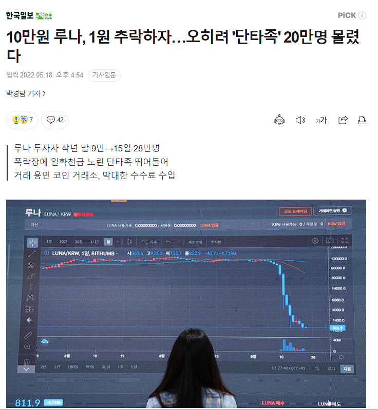 특히 해외와 달리 루나코인을 상장폐지하지 않은 국내 거래소의 보유 인원은 늘었습니다.