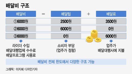 배달비의 구조는 배달팁과 배달료로 정해져잇는데요.