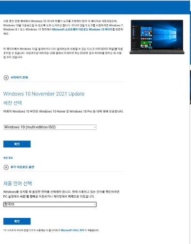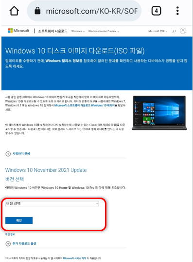 접속 주소 : https://www.microsoft.com/KO-KR/SOFTWARE-DOWNLOAD/windows10ISO