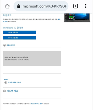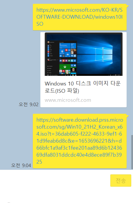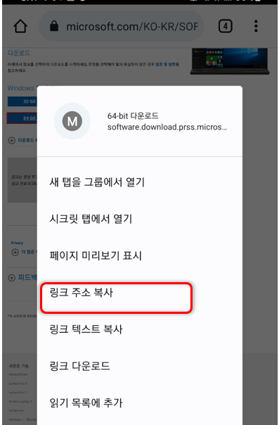 스마트폰으로 윈도우10 설치 파일 주소 가져오기