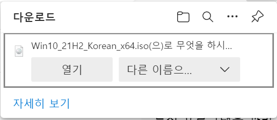 Win10_21H2_Korean_x64.iso로 다운로드 되는데요.