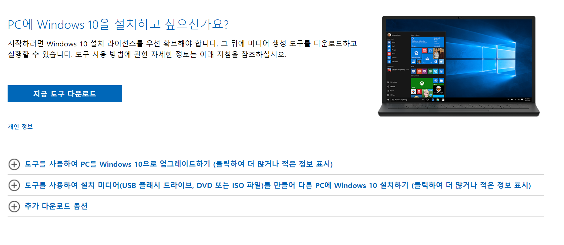 윈도우의 설치파일은 MS의 홈페이지에서 간단한 프로그램으로 다운로드가 가능한데요.