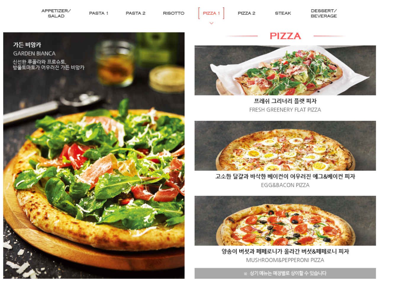 메뉴는 샐러드/파스타/리조또/피자/스테이크 등 양식메뉴는다 있었구요.