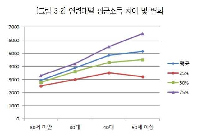 연봉은 하위 25%를 제외하고는 나이가 들수록 연봉이 증가하는 것으로 나타났습니다.