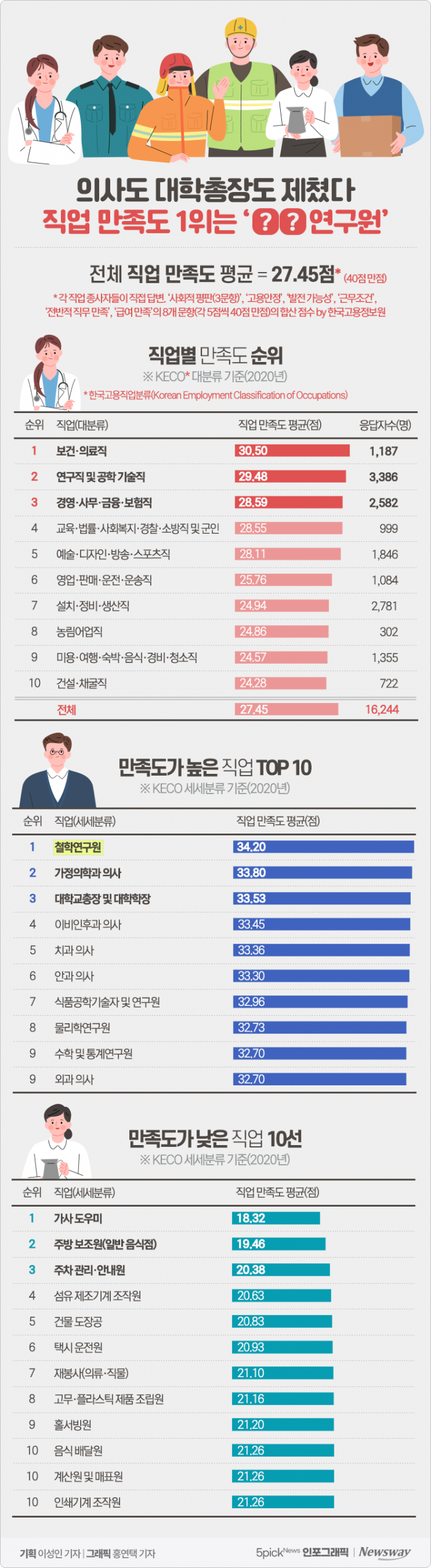 | 직업 | 직업만족도 평균 | 직업만족도 표준편차 | 응답원수 |