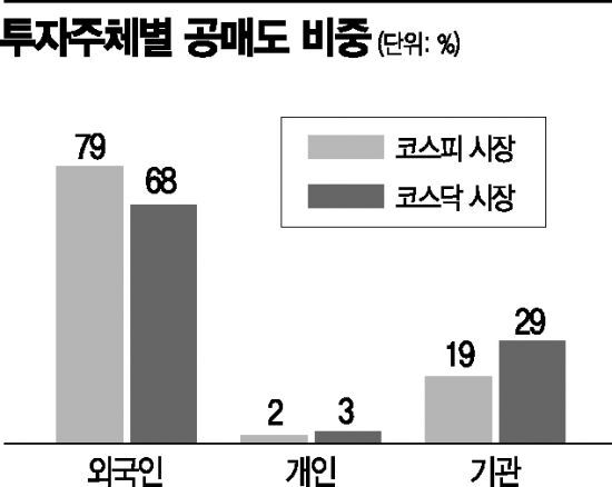 이중 외국인의 비중이 코스피 시장은 79프로에 달하고, 코스닥은 68프로에 달합니다.