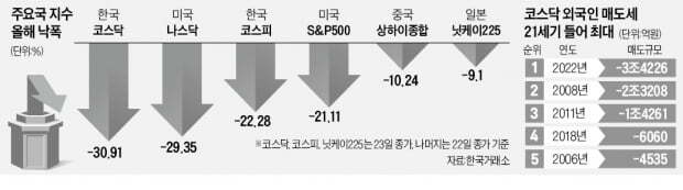 이는 나스닥 -29.35%보다 높은 전세계에서 가장 많은 낙폭을 기록하였습니다.
