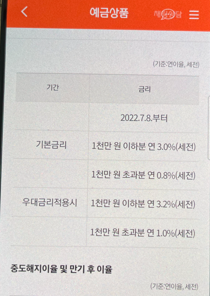 1천만원 이하분 연 3.0%의 기본 금리를 확인할 수 있습니다.