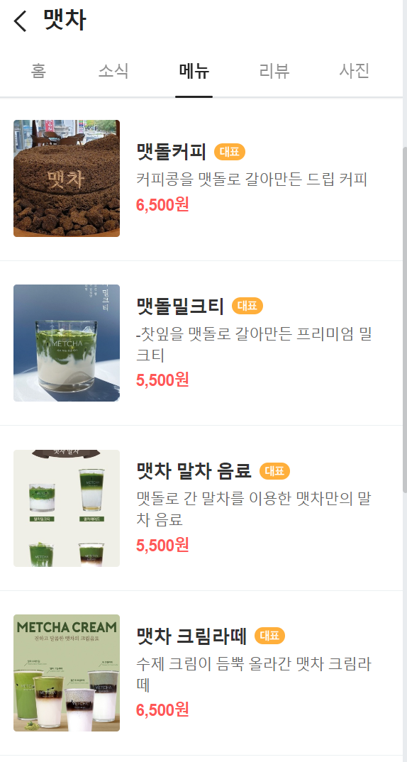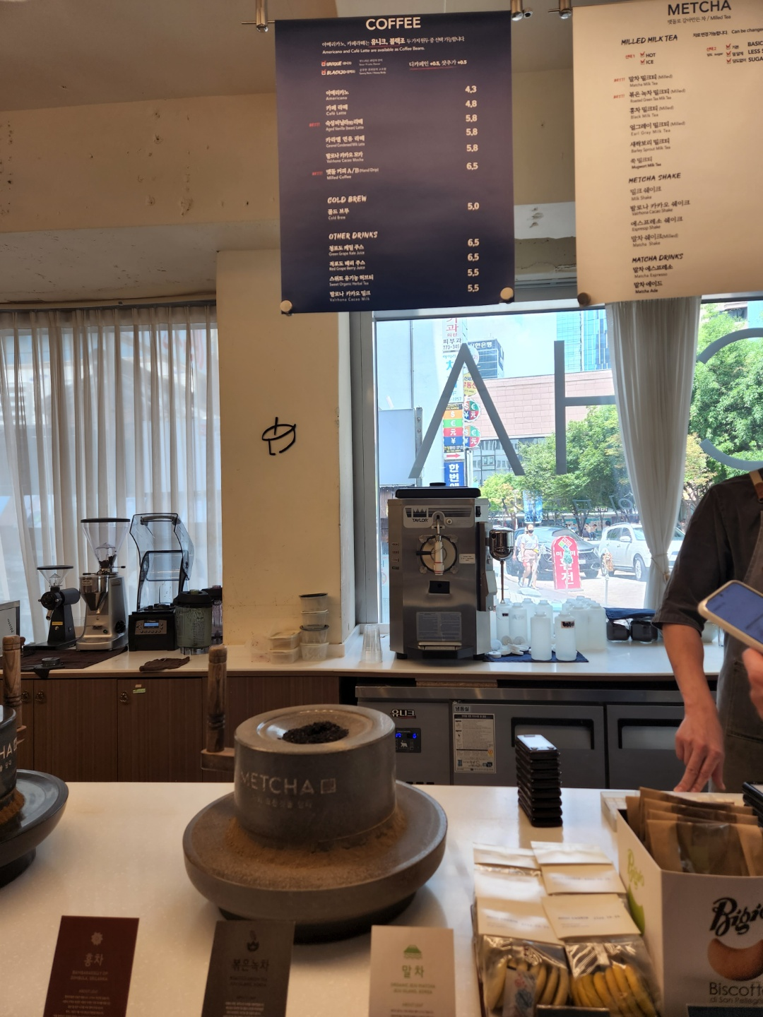 전체적으로 컨셉이 멧돌로 만든 커피와 말차인데요!