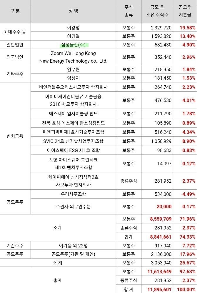 또한 성일하이텍 지분중 삼성물산이 있구요.