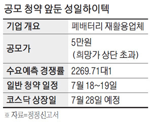 공모가가 5만원으로 책정되며 성일하이텍 공모 규모는 1335억원, 시가총액은 6135억원으로 확정됐다.