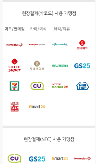 KB pay 사용가능한 가맹점은 CU, GS25, 미니스톱, 이마트24를 비롯한 편의점과 롯데마트, 홈플러스 하나로 클럽등에서 사용가능합니다.