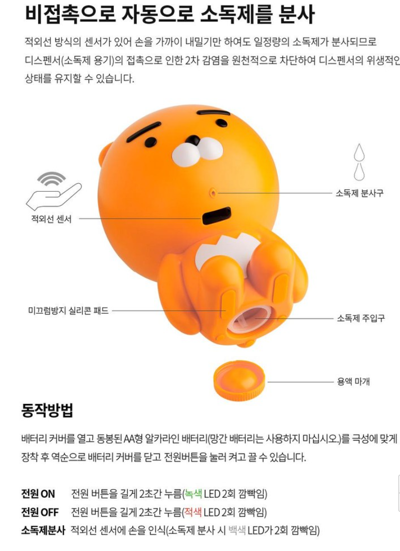 상품 서비스에 보면 적외선 센서로 인식하여 코로나19 손 소독제를 분사해줍니다.