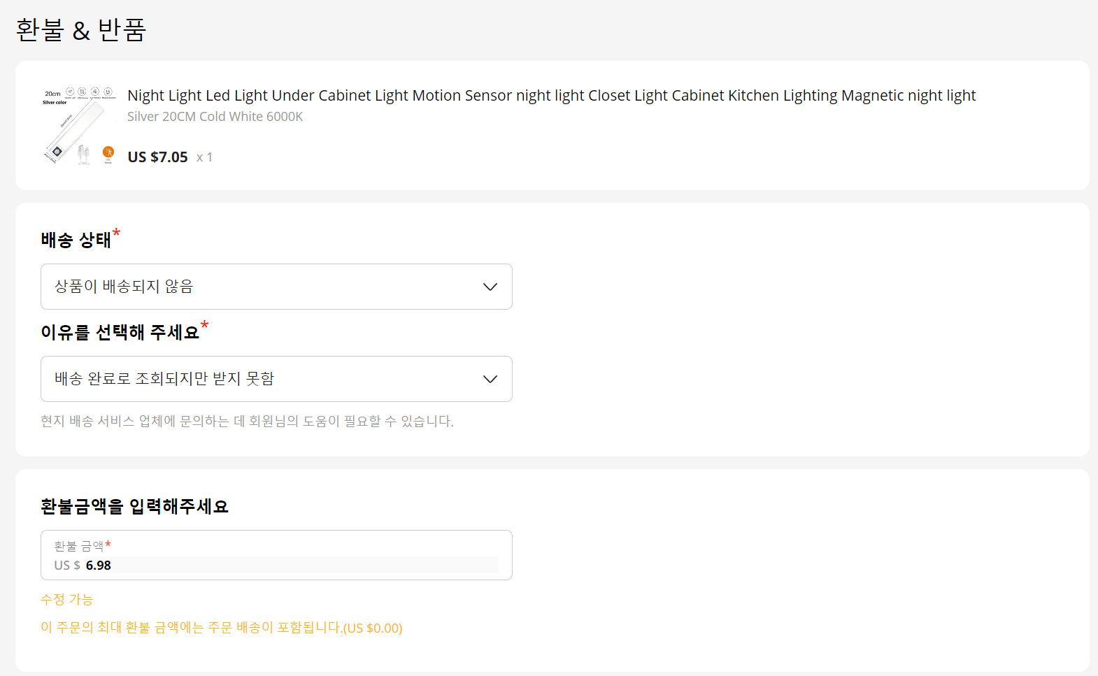 구매에서부터 배송까지도 상당한 시간이 걸리는데요. 또 거기다가 환불까지 기다리려면