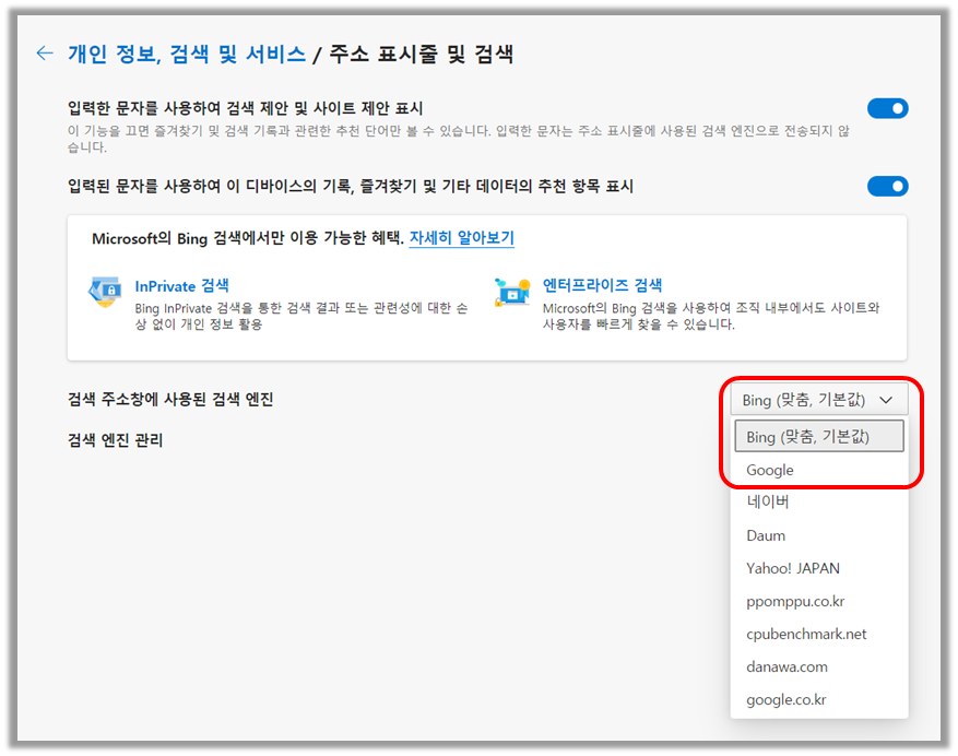 MS 엣지를 사용하시다 보면 기본 검색엔진이 비운의 Bing인데요.