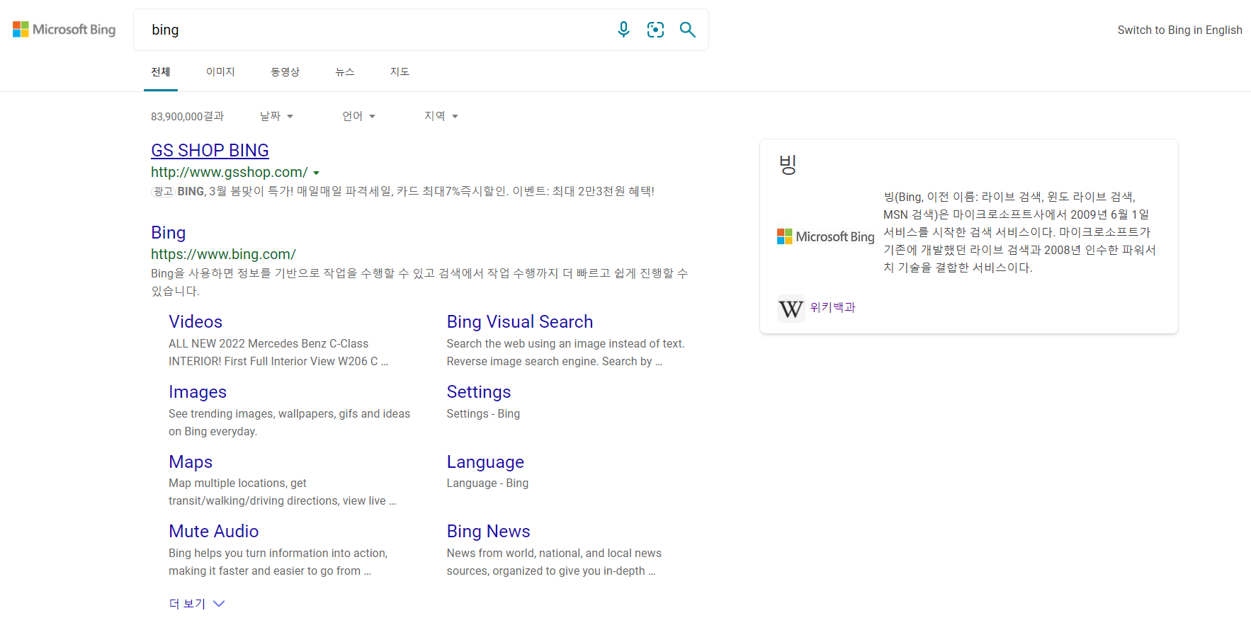 빙은 MS에서 열심히 만들고 있는 검색엔진이지만, 사용자가 많지 않아 검색의 결과가 썩 좋지 않습니다.