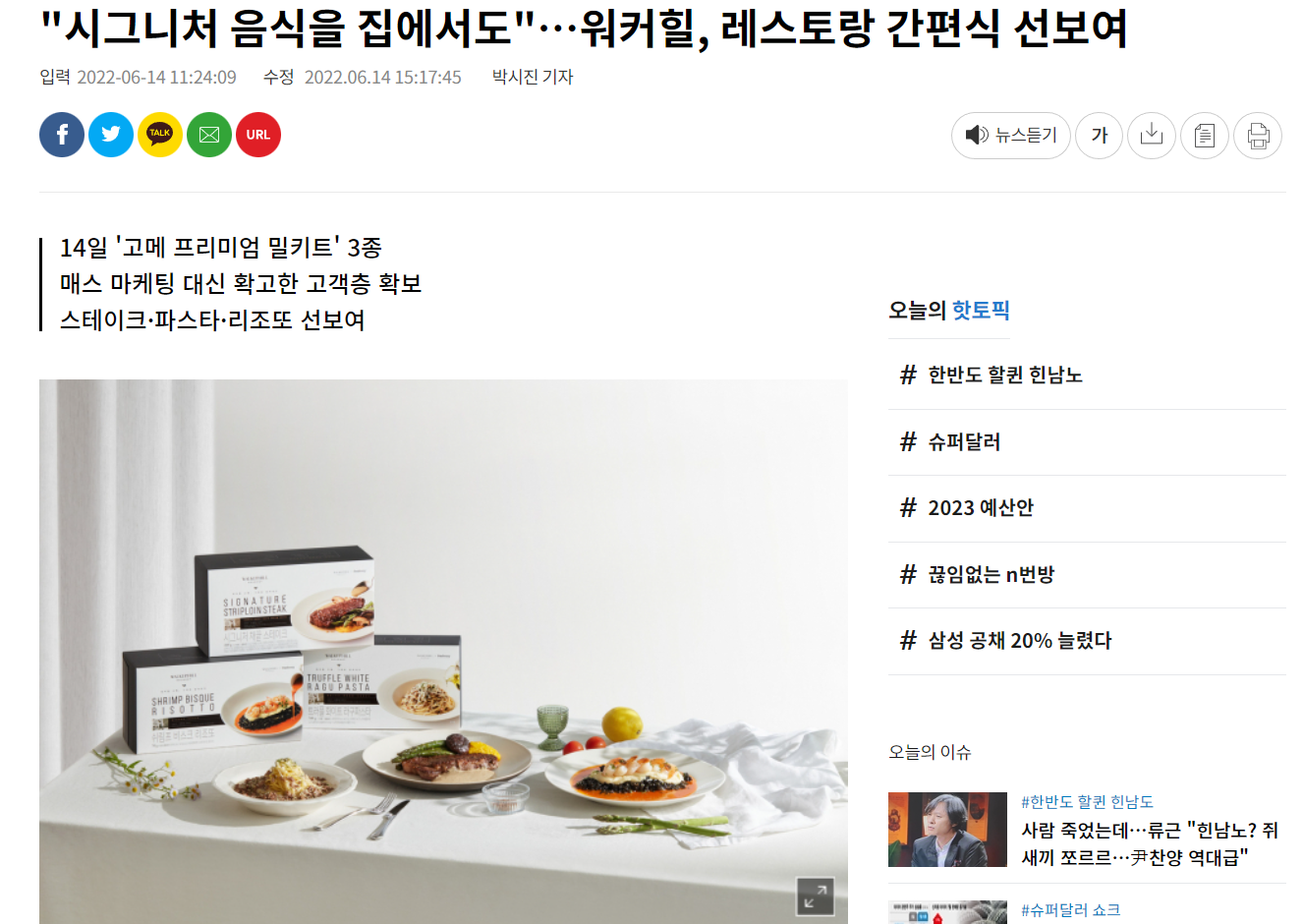 워커힐은 지난 6월 14일에 '고메 프리미엄 밀키트' 3종을 출시하였는데요.