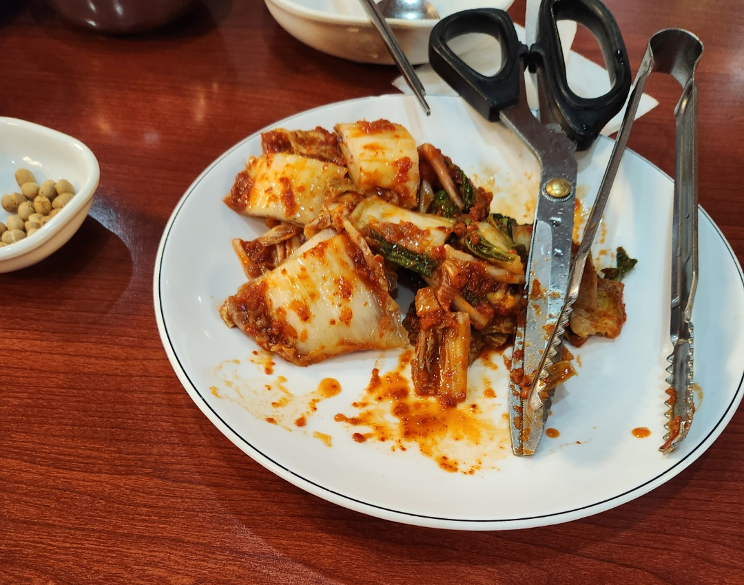 그리고 같이 나온 김치를 잘라 먹으면 되는데요. 김치도 완전 맛있습니다.