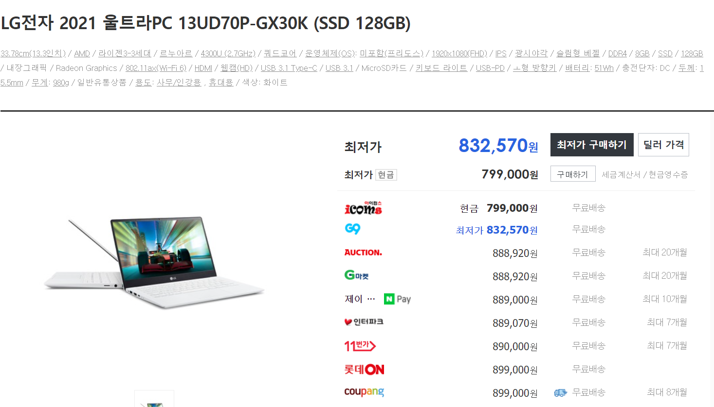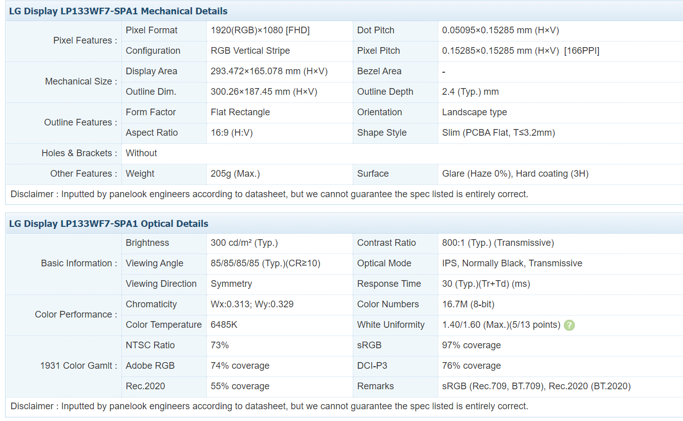 다나와 등 국내에서 확인할 수 있는 정보로는 13.3인치와 FHD라는 정보만 나오고