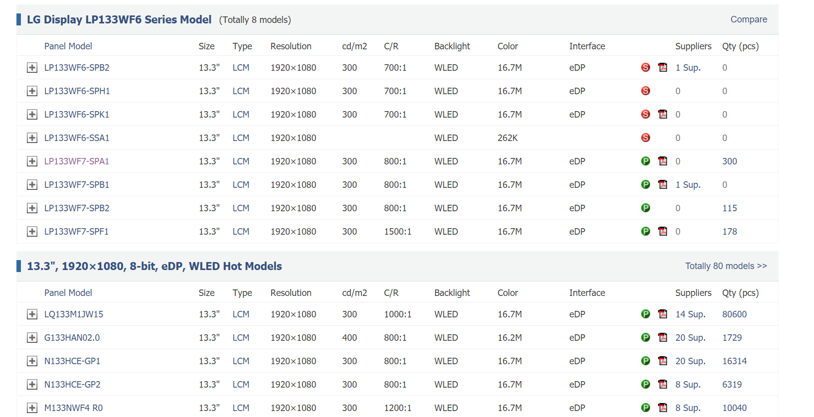그리고 하단으로 가시면 이 패널의 시리즈 모델과 유사한 패널 중 인기 패널의 정보 등을 확인하실 수 있습니다.