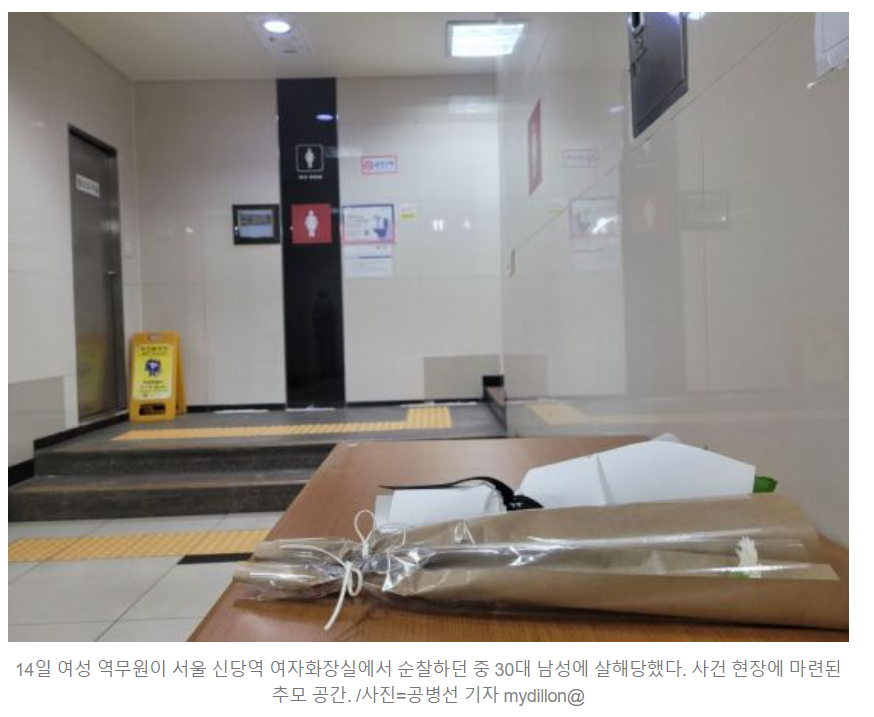 어제 신당역에서 여성 역무원(B씨)이 여자화장실에서 순찰 중 30대(A씨)에게 살해당했습니다.