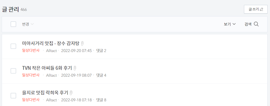 먼저 작성 글은 총 466개를 썼네요. 통계적으로 1일 1포스팅 정도 될 수 있을 듯하네요.