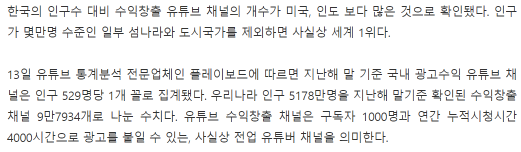 그리고 기사에 따르면 작년 수익창출 채널이 9만 7934개인데요.