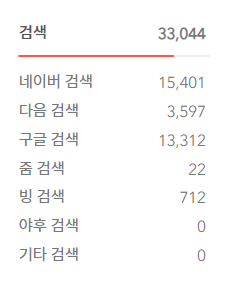 네이버 > 구글 > 다음 순으로 사실 국내 검색엔진 순으로 방문하신 것 같네요.