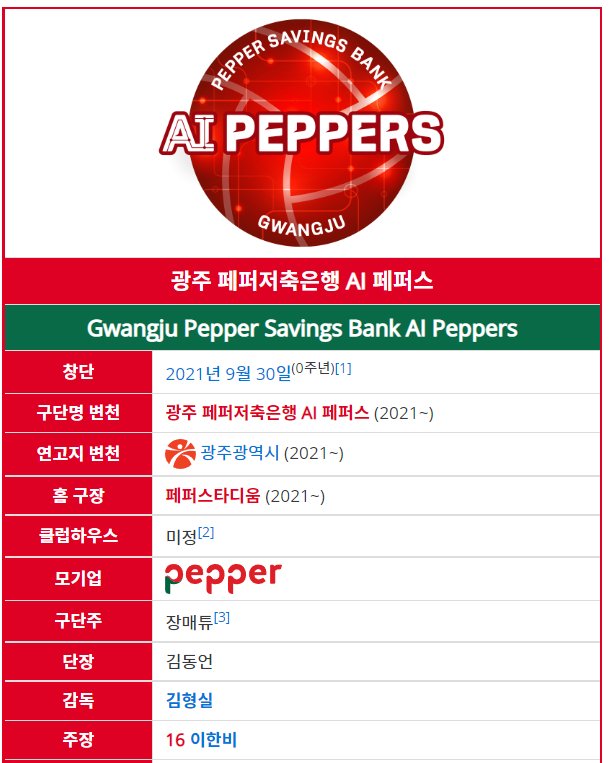 그리고 여자배구를 보신다면 광주 페퍼저축은행 AI 페퍼스 구단을 운영하고 있습니다.