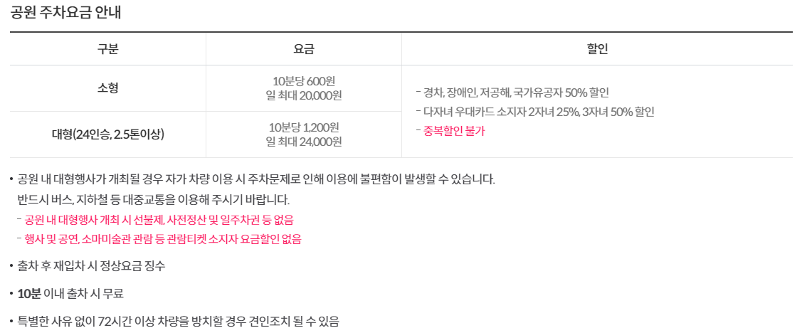 다만 공원내 행사가 진행되면 주차가 힘들수 있습니다.