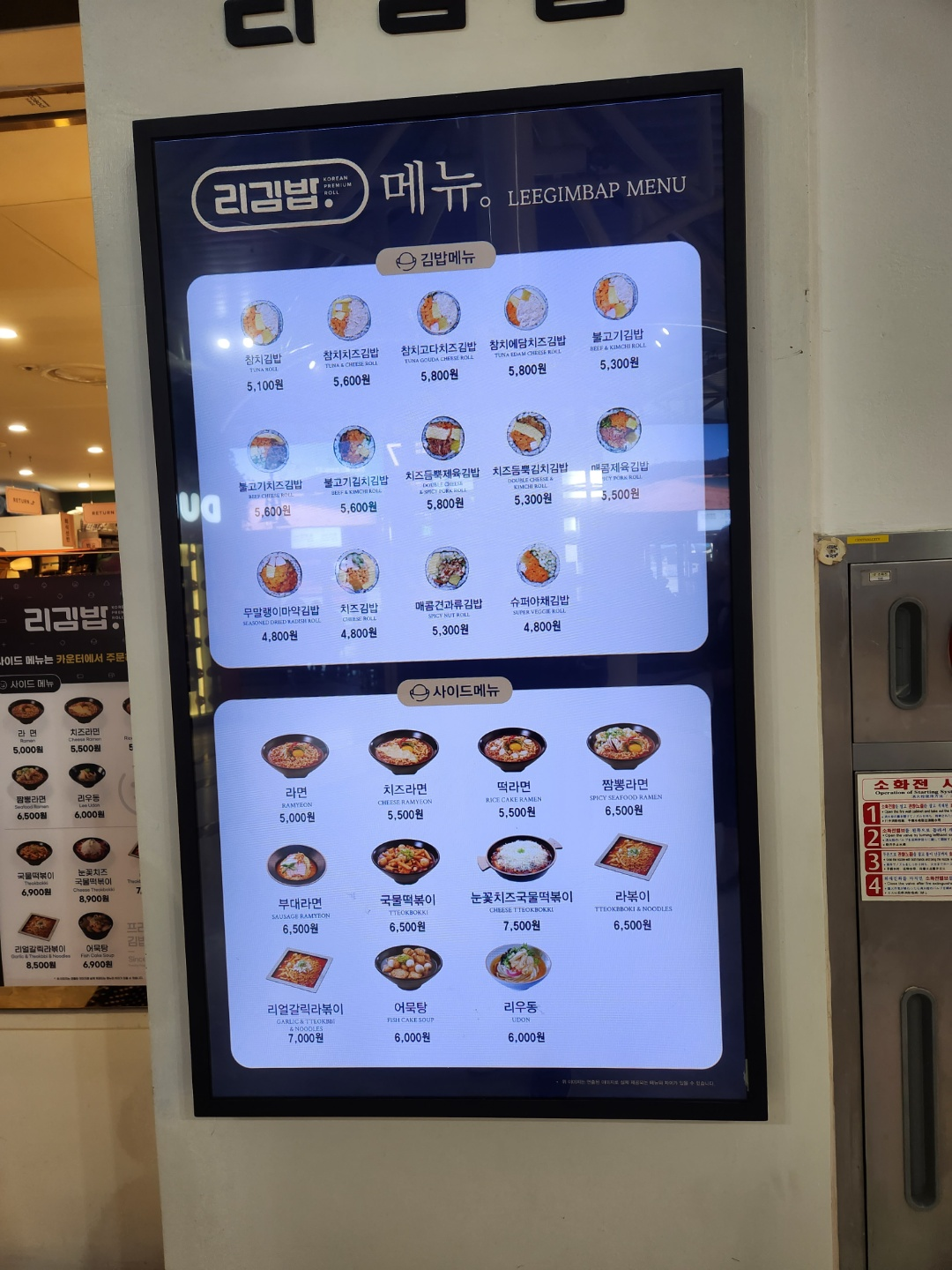 리김밥은 메뉴는 아래와 같습니다.