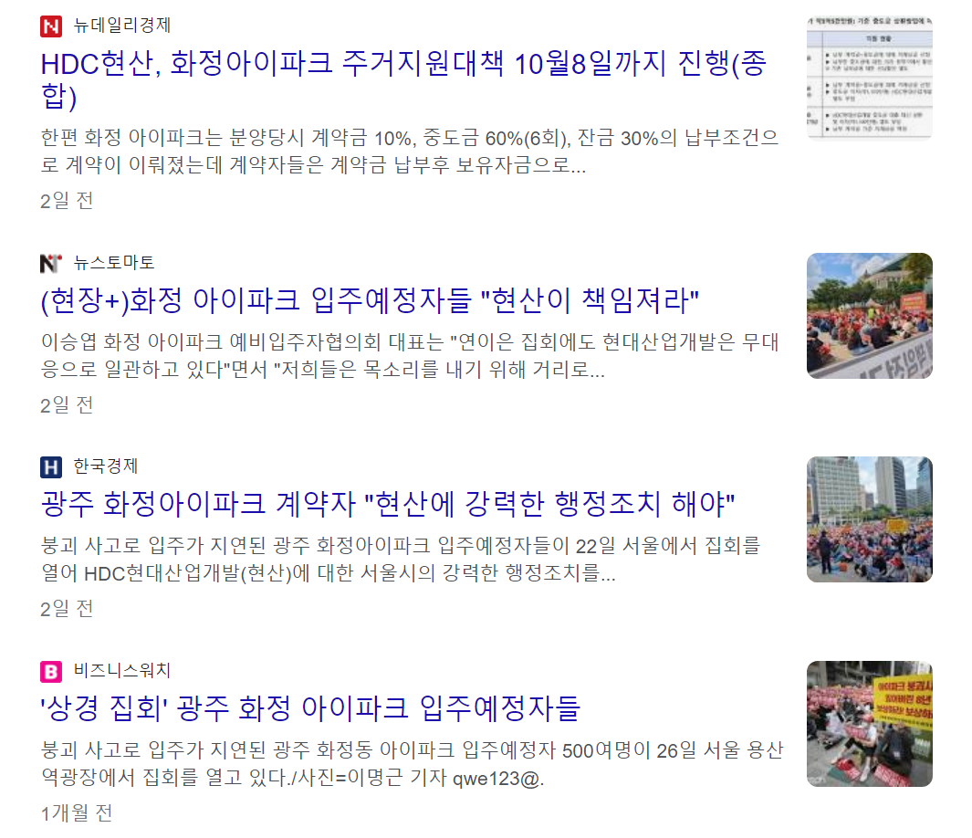 HDC현산이 사고를 일으킨 아직 화정아이파크의 보상이 마무리되지 않았다고 하는데요.