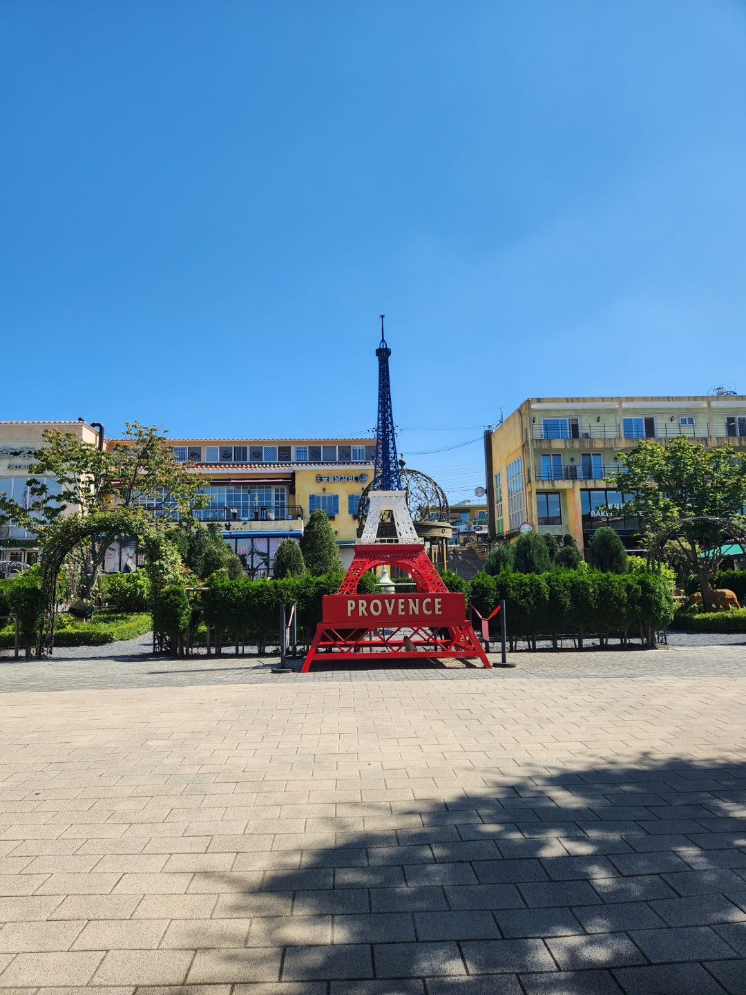 파주 프로방스 마을의 랜드마크인 에펠탑을 볼 수 있습니다.