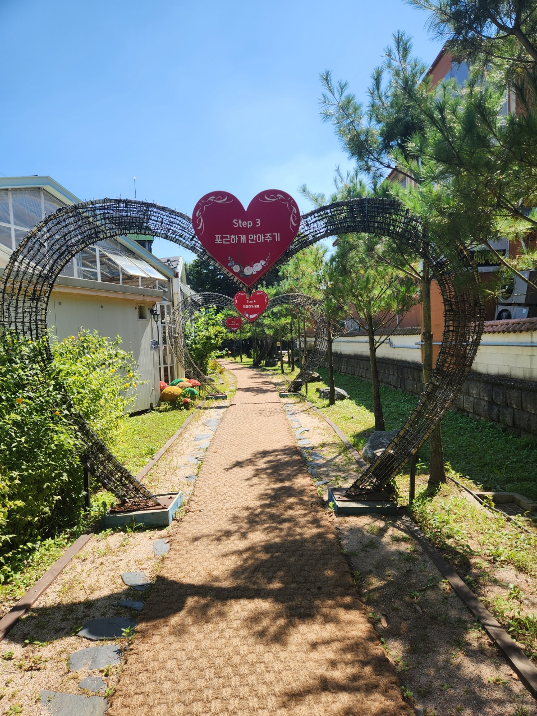맑은 하늘과 함께 작은 정원이 아기자기 하게 꾸며져 있습니다.
