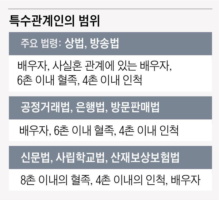 특수관계인은 회사의 대주주 및 오너와 특수관계에 있는 자를 말하는데 주로 오너의 친인척,