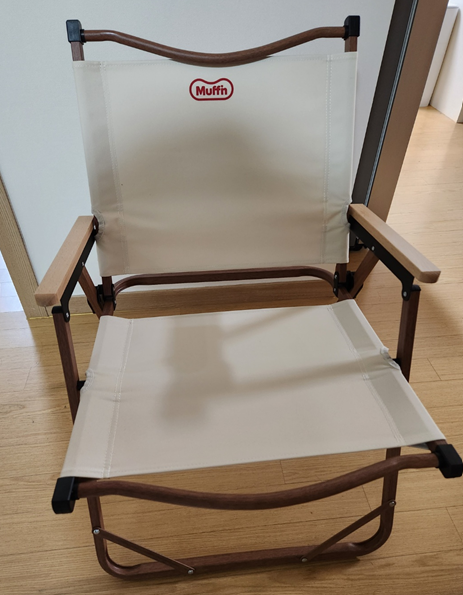 캠핑의자 상단에 머핀이라는 표시가 있구요. 그냥 열고 닫기만 하면 됩니다.