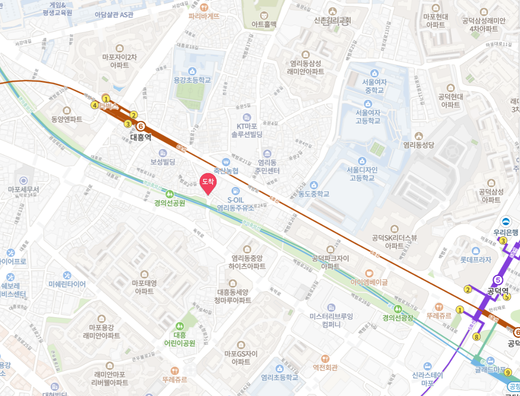 대흥역 3번출구에서 Soil 염리동 주유소 가는길에 보입니다.